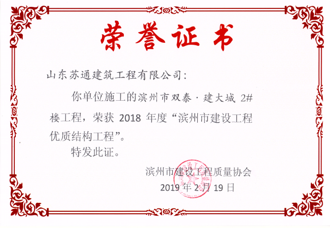 • 喜訊:我公司三位同志獲評(píng)濱州市建筑企業(yè)優(yōu)秀項(xiàng)目經(jīng)理稱號(hào)